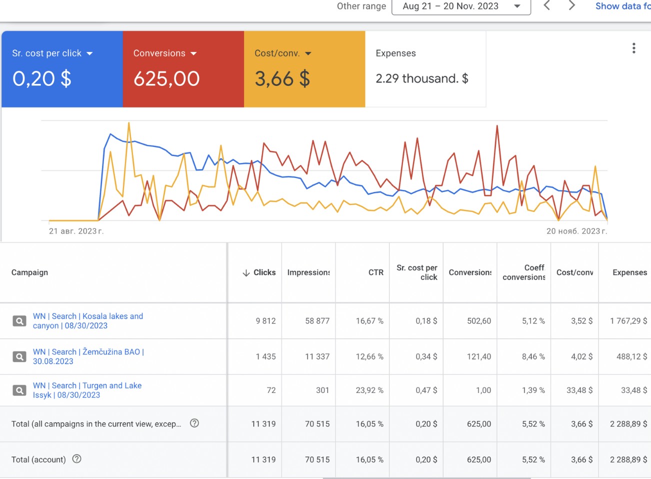 Изначально планировался запуск таргетированной рекламы. Было получено много заявок, но, поскольку у клиента специфическое предложение по внутреннему туризму, а также высокая цена индивидуальных туров, был высокий % потерь клиентов после обработки.
