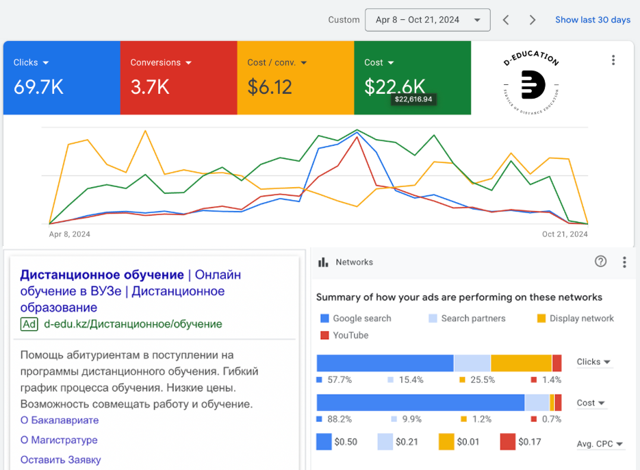 Данный скриншот предоставлен с Google Ads и опубликован после письменного утверждения с заказчиком.