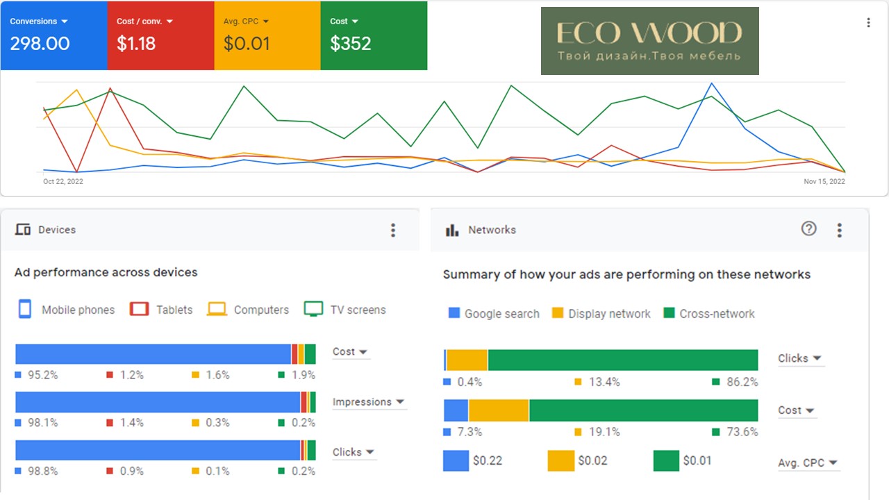 Данный скриншот предоставлен с Google Ads и опубликован после письменного утверждения с заказчиком.