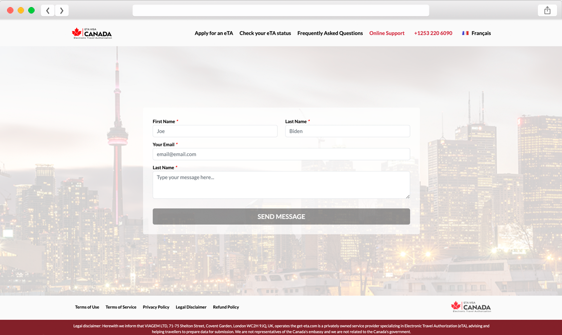 Мы создали удобный сайт для обработки заявок на получение канадской электронной авторизации для путешествий (eTA). Платформа обеспечивает быстрый процесс подачи заявок, отслеживание статуса и получение уведомлений о результатах.