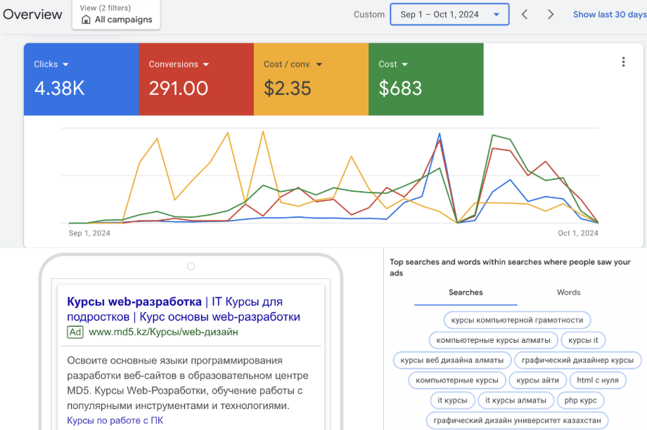 Данный скриншот предоставлен с Google Ads и опубликован после письменного утверждения с заказчиком.