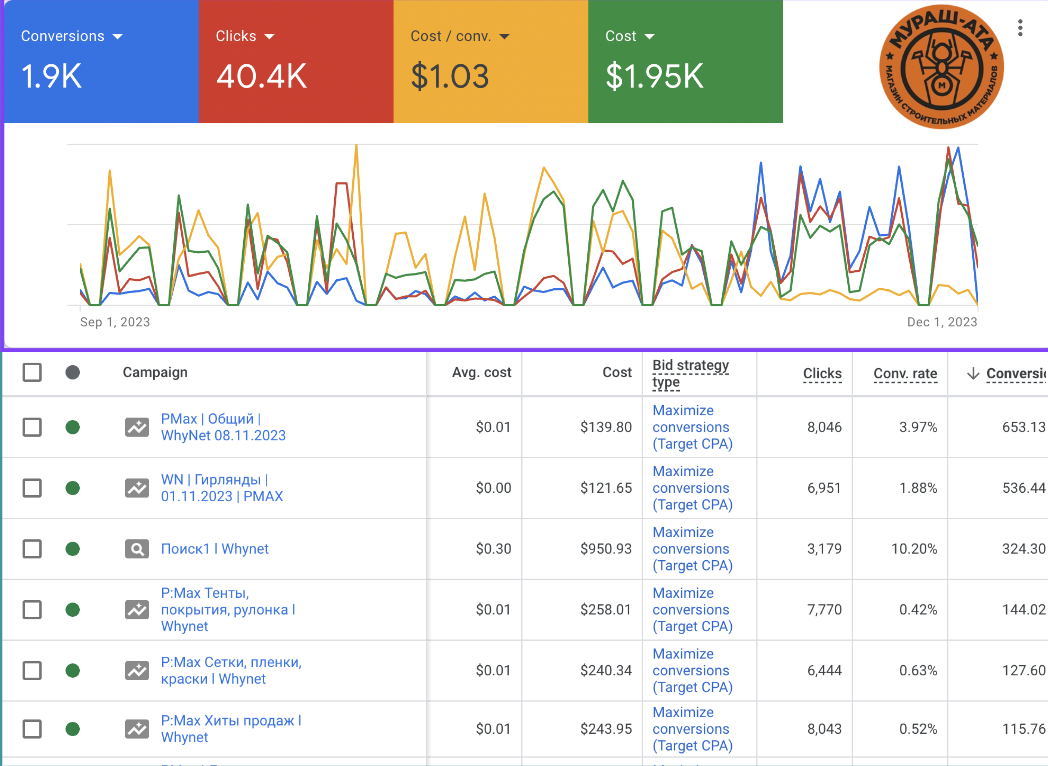 Данный скриншот предоставлен с Google Ads и опубликован после письменного утверждения с заказчиком.